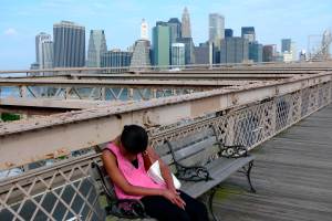 He pensado muchas veces en ella, en la mujer anónima de la foto, ajena al desafiante paisaje de rascacielos que tiene a sus espaldas. Su apacible sueño mañanero en el banco contrasta con imágenes más recientes grabadas en el puente, literalmente tomado por otros soñadores: esos miles de ciudadanos del movimiento Occupy que protestaban contra los especuladores de Wall Street. Hay bancos que sirven para dormir dulces siestas y otros que solo producen pesadillas y cobran intereses. Ya sabemos, por Calderón, que la vida es sueño. Y los sueños…