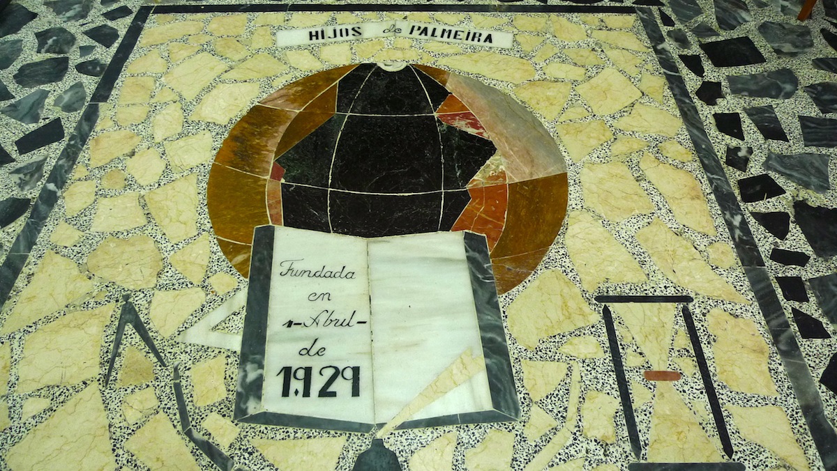 A falta de camellos y carrozas, sus majestades se han subido a un cuatro por cuatro y, en vista de la persistente lluvia, han puesto rumbo a la Sociedad de Hijos de Palmeira, entidad fundada en Newark (Nueva Jersey) —en el ya lejano 1929— por emigrantes de este pueblo que mira piadosamente a la Ría de Arousa. Una curiosa institución, La Sociedad, en cuyo emblema figuran los símbolos masónicos, presencia que no será, supongo, fruto de la casualidad, pero esa es otra historia. De logias, mandiles, escuadras y compases hablaremos en mejor ocasión.