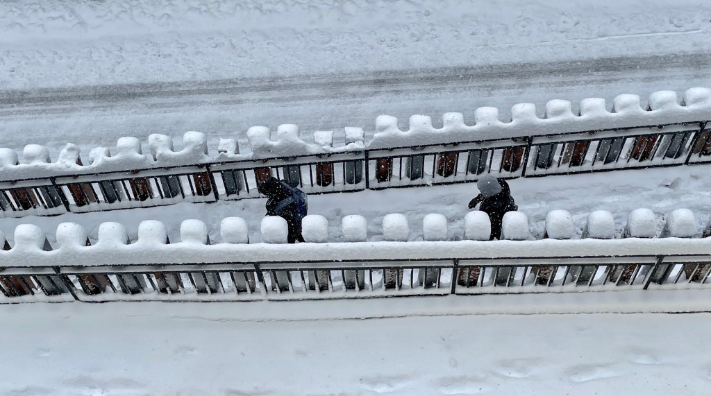 Siento el final / la colina nevada / y allí tu sombra.