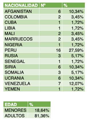 En total, la CEAR gestiona en Madrid 437 plazas de refugiados, distribuidas por sus distintas casas. La media de edad de las sesenta personas acogidas en El Escorial, asistidas por una quincena de profesionales y colaboradores de la ONG, ronda la treintena, con residentes que van desde uno a setenta y seis años, tal como señalamos anteriormente. Por países, la nacionalidad de origen más representada es la de Perú, país seguido de Venezuela. El número de solicitantes de asilo en España, como el gigantesco pinsapo del jardín de la Casa de Paz, no ha dejado de crecer en los últimos años. Este es el resumen estadístico facilitado por Arantxa Sánchez. Las cifras, actualizadas en mayo de 2024, corresponden solo al centro de El Escorial:
