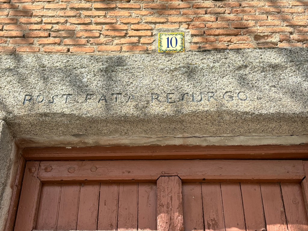 La frase latina post fata resurgo, frecuente en inscripciones romanas y de épocas posteriores, aparece asimismo plasmada sobre la puerta principal del Monasterio de Prestado (imagen de arriba), aunque se desconoce quién la cinceló sobre esa piedra del dintel. Ya estaba allí cuando Federico Fliedner adquirió la finca.